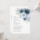 Erleben Sie eine zeitlose und romantische Hochzeit mit dieser eleganten staubblauen und navy Wasserfarben-Blumen-Einladung. Diese raffinierte Komposition aus Rosen und zartem Grün verbindet klassische Blumenmotive mit moderner, minimalistischer Typografie für einen mühelos-sophistizierten Look.
