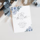 Dusty Blue Blumenschrift Save the Date Hochzeitskarte. Text, Bild und Farben können bearbeitet werden.