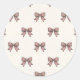 Erhöhen Sie Ihre Geschenkverpackung und Korrespondenz mit diesen eleganten Coquette-Rundaufklebern. Diese Etiketten mit einem zarten, sich wiederholenden Muster aus staubig rosafarbenen Schleifen auf cremigem Hintergrund sind die perfekte Abrundung für jeden, der eine vintagehafte, feminine Ästhetik liebt.