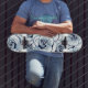 Ein Skateboard, der ein hellblaues, Wiederholen, Hand-gezeichnet, Rosenmusterentwurf kennzeichnet