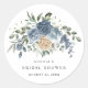 Eleganter staubblauer und champagnerfarbener Blumenaufkleber - perfekt zum Verschließen von Geschentüten, Umschlägen oder Geschenken auf Ihrer Brautparty.
