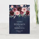 Staubiges Rosa Burgunderrot Florales QR-Code Navy- Einladung