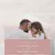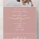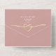 Diese romantische staubige Rosenfarbe in einer einzigen Hochzeitseinladung enthält eine weiche rosa Farbpalette, ein personalisiertes Foto und ein elegantes goldenes Herz-Detail, wodurch ein warmer und zeitloser erster Eindruck für Ihre Hochzeit entsteht.