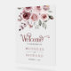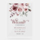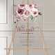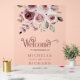 Elegantes Hochzeitswillkommensschild mit schönen Blumen und moderner Typografie.