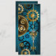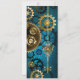 Türkis, strukturiert, Steampunkhintergrund mit Messing- und Goldgetrieben, Silberschlüssel und Uhr. Steampunkstil.