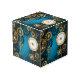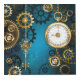 Türkis, strukturiert, Steampunkhintergrund mit Messing- und Goldgetrieben, Silberschlüssel und Uhr. Steampunkstil.
