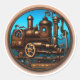 Dieser Steampunk-Aufkleber zeigt einen rostigen, geblasenen, mit Gängen und Rohren geschmückten Motor, der aus seinem Schornstein blühende Dampfwolken ausstrahlt, die an die Zeit der industriellen Revolution des späten 19. Jahrhunderts erinnern. Das aufwändige Design und die Vintage Ästhetik machen es zu einer perfekten Ergänzung zu jeder Sammlung von Steampunk-Fans.