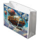 Steampunk Airship and Balloons in Sky Große Geschenktüte