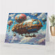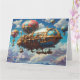 Faltkarte mit fantastischem Steampunkflugschiff und Ballons. Fügen Sie Ihren eigenen Text hinzu.