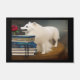 Stammtiere KI. Design eines Hundes und Bücher. Sehr stumpf. Eine künstliche Intelligenz schuf ein Stück. Willkommen auf unserer Zuhause. Anpassbare Dog-Matte. Anpassbarer amerikanischer Eskimo Hund mit Büchern auf einer Türmatte. Ideal für Buchliebhaber. Ideal für Hundefreunde.