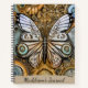Das ist ein Steampunkstil-Notizbuch mit einem Schmetterling mit Vintagen Uhren und den inneren Gängen von Uhren in hellblauen und braunen Tönen. Der Text auf der vorderen Abdeckung ist anpassbar und würde ein großartiges personalisiertes Geschenk machen.