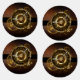Antique, fantastic watches with gold and brass gears on a brown, rusty background. Steampunk style.