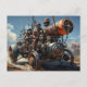 Hier haben wir ein Fahrzeug in einem Steampunk-Langlaufrennen. Diese vierrädrige, von zwei Männern angetriebene, in Tandem sitzende Rezeption ist eine Mischung aus Dampf, Verbrennungsmotor und Jet-Motoren, die mit verschiedenen Kontrazeptionen geschmückt ist, die das Wer-weiß-was tun.