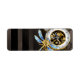 Antiquitätendiale mit Gold- und Messinggetrieben, mit mechanischer Libelle auf braunem, gestreiftem Hintergrund dekoriert. Steampunk.