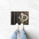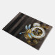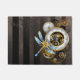 Antiquitätendiale mit Gold- und Messinggetrieben, mit mechanischer Libelle auf braunem, gestreiftem Hintergrund dekoriert. Steampunk.