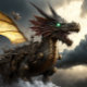 Phantastischer Steampunk-Drache, der die Nacht durchdacht.