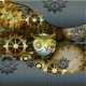 steampunk, Dampf, Eule, mechanisch, Technologie, Gänge, Gold, Blau, Faser,