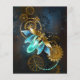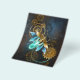 Steampunk firefly with blue transparent wings and green light bulb on worn, brown, textured background. Steampunk style.