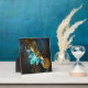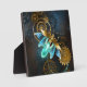 Steampunk glänzt mit blauen, transparenten Flügeln und grüner Glühbirne auf abgenutztem, braunem, strukturiertem Hintergrund. Steampunkstil.