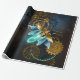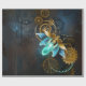 Steampunk glänzt mit blauen, transparenten Flügeln und grüner Glühbirne auf abgenutztem, braunem, strukturiertem Hintergrund. Steampunkstil.