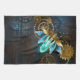 Steampunk glänzt mit blauen, transparenten Flügeln und grüner Glühbirne auf abgenutztem, braunem, strukturiertem Hintergrund. Steampunkstil.