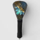 Steampunk glänzt mit blauen, transparenten Flügeln und grüner Glühbirne auf abgenutztem, braunem, strukturiertem Hintergrund. Steampunkstil.