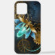 Steampunk glänzt mit blauen, transparenten Flügeln und grüner Glühbirne auf abgenutztem, braunem, strukturiertem Hintergrund. Steampunkstil.