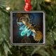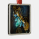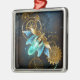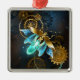 Steampunk glänzt mit blauen, transparenten Flügeln und grüner Glühbirne auf abgenutztem, braunem, strukturiertem Hintergrund. Steampunkstil.