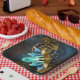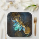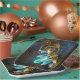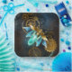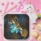 Steampunk glänzt mit blauen, transparenten Flügeln und grüner Glühbirne auf abgenutztem, braunem, strukturiertem Hintergrund. Steampunkstil.