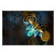 Steampunk glänzt mit blauen, transparenten Flügeln und grüner Glühbirne auf abgenutztem, braunem, strukturiertem Hintergrund. Steampunkstil.