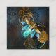 Steampunk glänzt mit blauen, transparenten Flügeln und grüner Glühbirne auf abgenutztem, braunem, strukturiertem Hintergrund. Steampunkstil.