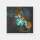 Steampunk glänzt mit blauen, transparenten Flügeln und grüner Glühbirne auf abgenutztem, braunem, strukturiertem Hintergrund. Steampunkstil.