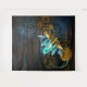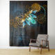 Steampunk glänzt mit blauen, transparenten Flügeln und grüner Glühbirne auf abgenutztem, braunem, strukturiertem Hintergrund. Steampunkstil.