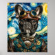 AI generierte Kunst eines wunderschönen Steampunk French Bulldog in der Sternennacht von Van Gogh