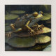Gold Metallgetriegel und Frosch auf einem Lilienpolster Steampunk AI generierte Kunst.