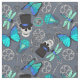 Mit diesem coolen grauen Stoff, der mit Skullen in Oberhüten, blauen Schmetterlingen, Zahnrädern und alten Schlüsseln gemustert ist, können Sie Ihre eigene Vintage Steampunkkleidung und Hauswaagen kreieren