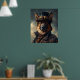 A striking steampunk portrait of a noble German Shepherd dressed in full Victorian regalia. Wearing a black top hat with brass goggles, detailed leather gear, and a confident expression, this imaginative digital artwork blends fantasy, science fiction, and elegance.