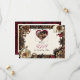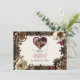 Hübsche Hochzeit Speichern Sie die Date-Karte mit einem Steampunk-Thema. Blume aus schmalem Metall in Gold, Kupfer und Bordeaux runden diese Hochzeitseinladung ab.