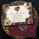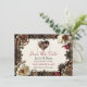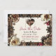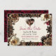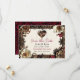 Hübsche Hochzeit Speichern Sie die Date-Karte mit einem Steampunk-Thema. Blume aus schmalem Metall in Gold, Kupfer und Bordeaux runden diese Hochzeitseinladung ab.