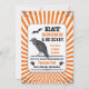 Diese spöttischen Einladungen des Halloween-Party haben einen steampunk-Look. Auf Kraftpapier gezeigt. Die Farben sind traditionell schwarz und orange und mit Fledermäusen, Raven und vielen Retro-Typografie.