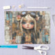 "Mit diesem skurrilen Steampunk-Kindergewebe entmutigen Kinder die Fantasie, Set vor einem lebendigen mosaikischen Hintergrund. Mit spielerischen Details, Gängen und farbenfrohen Farben besticht dieses Design durch eine Touch von Fantasie und Kreativität für jedes Handwerk oder Möbel."