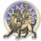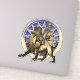 Vintager, heraltrockener Löwe im Steampunk-Stil mit zusätzlichem Steampunk-Top-Hut, Zeitmesser und architektonischem Rundelement in blau