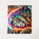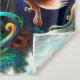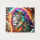 Dieser Wandteppich hat ein Steampunkdesign darauf.