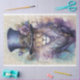 Das Portrait des majestätischen Löwen im Steampunkdesign. Die lila-lila Farbtöne vervollständigen das grungelige Aussehen. Entdecken Sie es auf ein antikes Möbelstück oder überraschen Sie Ihre Lieben mit einem Geschenk, wenn Sie es als Papiertaschentuch verwenden.