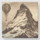 Ein Heißluftballon im Steampunkstil schwimmt über das Matterhorn. Digitale Kunst in Sepia
