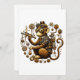 Ein steampunk-inspiriert Affe, verkleidet in aufwändiger mechanischer Kleidung. Der Affe trägt eine Brille, eine Weste und einen kleinen oberen Hut, während er eine komplexe mechanische Vorrichtung wie eine Strahlenpistole hält. Um sie herum sind Gänge, Rohre und andere industrielle Elemente, die eine reiche und detaillierte Steampunkästhetik schaffen. Die goldenen Farbtöne der mechanischen Teile kontrastieren mit dem natürlichen Fell und vermischen Bio und mechanische Themen.