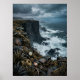 Eine dramatische Küstenklippe erhebt sich über einem dunklen, aufgewühlten Ozean, wo Wellen gegen schwarzes Gestein krachen und Nebel die Luft erfüllt. Eingebettet in das raue Gelände sind Reste von Steampunk-Maschinerie – verwitterte Messingzahnräder, Metallfragmente und industrielle Relikte, die von der Zeit geprägt sind. Die Szene verbindet natürliche Kraft mit mechanischer Eleganz und schafft einen auffallenden Kontrast zwischen der Energie des Ozeans und dem komplizierten Design. Kühle blau-graue Töne und ein weicher atmosphärischer Dunst verstärken die filmreife Stimmung. Dieses Kunstwerk ist perfekt für Innenräume, die eine kühne Verschmelzung von gotischer Küstenlandschaft und industrieller Fantasie suchen.