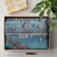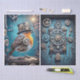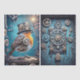 Steampunk-Robin mit Gängen und Uhren geschmückt, Set vor einem blauen Hintergrund. Ideal für Möbelrestaurierung und andere kreative Projekte.