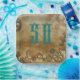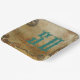 Steampunker Geburtstagspapier-Teller. Rustikale Gänge sind Teil des altmodischen Bildes mit großen Zahlen in der Mitte für sein Alter. Grunge Zahlen in verdigris blau-grün, um Kupferrost darzustellen. Auf der quadratischen Platte gezeigt, aber auch rund.