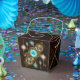Steampunk Rusty Hintergrund mit türkisfarbenen Lin Geschenkschachtel